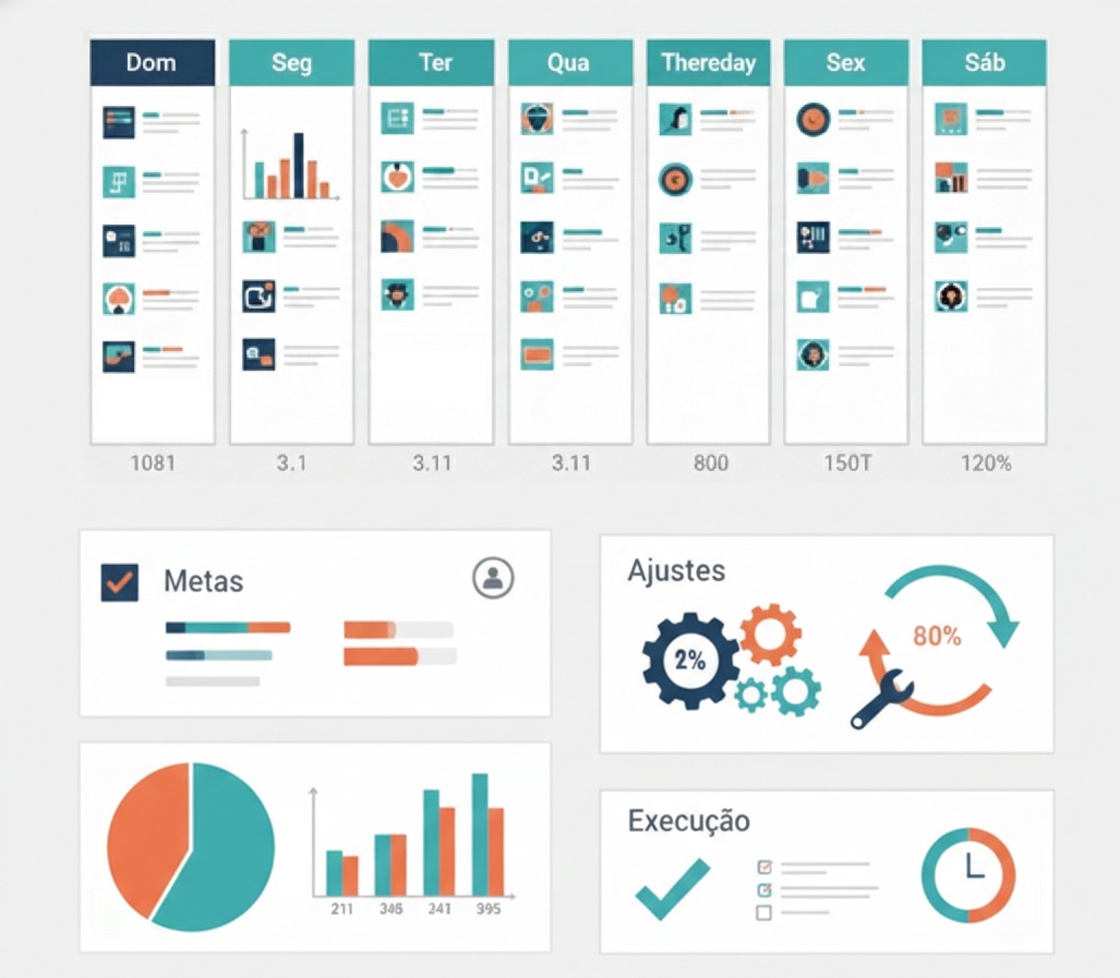 Transformamos a leitura em plano semanal com metas, prioridades e ajustes guiados por dados.